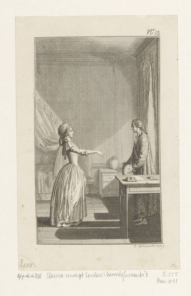 Curator: Here we have "Annunciatie," an engraving attributed to Louis Surugue, dating roughly from 1691 to 1733. It depicts the Annunciation. Editor: It strikes me immediately as an intimate moment despite the formality of the figures. Mary looks startled, almost vulnerable. Curator: It’s interesting how Surugue, working within the visual language of the Baroque period, frames this pivotal religious event. Engravings like this played a crucial role in disseminating religious narratives to a broader audience, acting as visual aids for faith and morality. Editor: Exactly. Consider the power dynamic embedded in this scene—a divine messenger interrupting Mary’s domestic sphere with life-altering news. What agency did women have in such narratives, or within the patriarchal religious institutions that propagated them? Curator: Baroque art often served to reinforce existing social hierarchies, with the church as a major patron. Examining this print, we can analyze how such images helped shape societal attitudes. The controlled lines of the engraving lend it a certain authority. Editor: But there's also something radical about it. A young, unwed woman is chosen to carry immense religious and political weight. We can choose to read her vulnerability not as a sign of weakness, but as an acknowledgment of the immense responsibility placed upon her. How has the depiction of the Virgin Mary evolved over time and across different social contexts? Curator: Her figure became, essentially, an official propaganda for various socio-political entities over centuries! You can look at its development for hundreds of years across different social, cultural, and religious settings. This piece acts as an artefact within this lineage. Editor: Indeed. Exploring that artistic history helps us unpack how narratives surrounding identity, faith, and power were carefully crafted and disseminated to various peoples over time. It remains important to unpack the intersectional nuances of artworks like this, understanding the complicated contexts that influence how it may be received across modern, multicultural settings. Curator: Absolutely. It is an invaluable tool in our continuous exploration of religious authority within artistic, commercial and sociopolitical channels across history. Editor: Precisely!