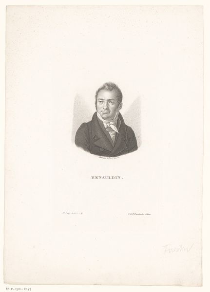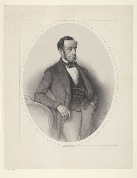 Jan Rijk Matthijssen created this portrait of Johannes Abraham Dederiks Molster, using lithography. This image is a stark reminder of the Dutch Biedermeier era and its cultural emphasis on bourgeois values. Molster’s somber gaze and austere attire reflect the period's conservative norms. The lithographic technique, popular at the time, allowed for wider distribution of images, contributing to the cult of personality around public figures. Who was Molster? And what did it mean to have your portrait produced and circulated at this time? It speaks to a very particular kind of social identity and aspiration, one entwined with notions of respectability and status. Consider, too, how the artist, Matthijssen, navigated his own identity and career within these social constraints. What choices did he have available to him, and how did he express his own vision through this work? Ultimately, the portrait captures a moment in time, laden with the complex interplay of identity, representation, and social expectation.