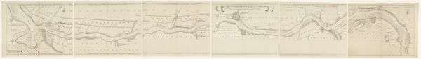 Curator: Before us we have a print from 1809, titled "Kaart van dijkdoorbraak onder Loenen," a work documenting a dike breach near Loenen. It seems to be the creation of an anonymous artist. Editor: The etching feels so controlled, almost scientific. I’m struck by the evenness of the lines, suggesting meticulous craftsmanship and probably a fairly repeatable process. Curator: Absolutely, prints such as this would have been reproduced in quantity at the time. I see more than just land and water; the visual language reveals a very specific cultural memory— the ever-present Dutch struggle against the sea, now etched into the collective psyche. Editor: The very act of mapping implies an assertion of control, doesn't it? Even if the event depicted signifies a temporary loss. It highlights the vulnerability inherent in manipulating nature. Consider the ink, the paper itself: each material signifies a different stage in the transformation of the landscape into an idea. Curator: You speak of control, and it makes me reflect upon our human place in these cycles of building, breaching, and rebuilding. The visual elements used to portray nature are highly conventional, stylized—yet they attempt to convey an authentic disaster. Do you think this tension influences the viewers’ experience? Editor: Certainly. The print’s limitations—the two-dimensionality, the restricted tonal range of the etching process itself—become metaphors for our limited ability to ever fully represent or manage something so inherently powerful as a major flood. Curator: It serves as a stark reminder that nature’s power can undo human constructions and reshape perceived boundaries in the literal landscape but also, potentially, in the human consciousness itself. What the imagery triggers for those remembering it is what creates its longevity. Editor: The transformation from natural disaster into consumable information, sold in prints, is another crucial aspect. It changes our perception. An engraving renders an extraordinary experience mundane through mass distribution and repeated engagement. I suppose that could be said of much art. Curator: Yes, and in turn transforms it to a symbolic rendering of history—a map leading viewers through loss, resilience and adaptation. Editor: Well, examining the artistic process offers its own way into the cultural significance of it, doesn’t it? A sort of alternate route for the eye and the mind.