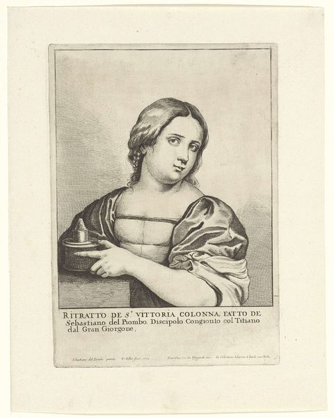 Editor: Here we have Wenceslaus Hollar’s "Portret van een vrouw met gestreepte sjaal," created in 1648. It's a delicate engraving on paper. There's a sort of gentle calmness in this work; a certain elegance emerges from the crosshatching. What compositional elements stand out to you in this portrait? Curator: The essence of this portrait lies in the relationship between line and form. Hollar’s meticulous engraving technique creates a visual tension. Notice how the density of the lines varies to model the woman's face and drapery, giving depth and dimension to the overall design. It isn't simply representational. How does the artist use the medium of engraving to explore form? Editor: So it's less about who the sitter is and more about Hollar’s exploration of line as a tool to describe volume and texture? I was quite interested in her gaze and now realize I projected feelings onto her based on something as arbitrary as her pose and its implied "seriousness." Curator: Precisely. Consider the composition of the lines, not just what they represent. Observe how the curved lines defining the hair contrast with the straighter, more angular lines in the striped shawl. The engraver controls the contrast to subtly influence the gaze, bringing it repeatedly to the face and then outward, towards the fabric. What does that visual rhythm tell you? Editor: I see! The rhythm creates movement, so that, far from simply being a picture, it's a network of patterns playing off each other. This approach isolates, making the piece "about itself." I understand your reading much better now! Curator: Yes. Close observation reveals not just the sitter, but the artist's decisions and manipulations to emphasize form. By focusing on those aesthetic relations, we decode Hollar’s unique pictorial language. Editor: Thank you, I’ll look at portraits in a completely new way. Curator: And hopefully appreciate how the visual vocabulary of line and form can communicate a depth beyond the superficial.