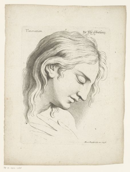 This print, “Head of a Young Man in Ecstasy,” was made by an anonymous artist, using etching techniques. The image presents us with an idealized male figure, his face tilted upwards and to the side, eyes wide, and mouth slightly open, conveying a sense of intense emotion. We might interpret this piece through the lens of 17th-century Dutch art, a period marked by a growing interest in human emotion and psychology. The Dutch Republic was, at the time, a hub of intellectual and scientific inquiry, and the exploration of human feelings became a popular subject in the arts. This image captures an interest in representing inner states through outward appearances. To understand it better, we might look to treatises on art and emotion from the period, and learn more about the cultural meanings associated with different facial expressions. Through such research, we can gain insight into the social and intellectual context that shaped its creation and reception. The meaning of art is always contingent on its historical setting.