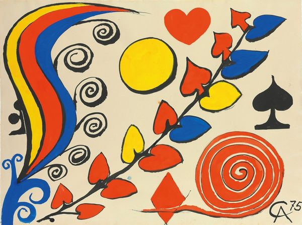 Alexander Calder, sometime in his life, made this gouache, “Oignon et Navets”. The onion and turnips of the title are more like abstracted botanical forms, or, even better, like characters in a play. The colors here are like primaries gone slightly wrong. Not wrong, but weird. The red is tomato soup red, the yellow is lemon, the blue is, well, just blue. Look at how the red shape is crossed by quick black lines, almost like some censorship is being applied. And the yellow, what is that? A hairy potato? A misshapen gourd? I love the way Calder just lets his hand wander, there's no second guessing. His work reminds me of Miró, another artist who reveled in biomorphic shapes and a playful approach to artmaking. This piece, like much of Calder's work, embraces the joy of experimentation and the endless possibilities of abstraction. What a refreshing thing to see.