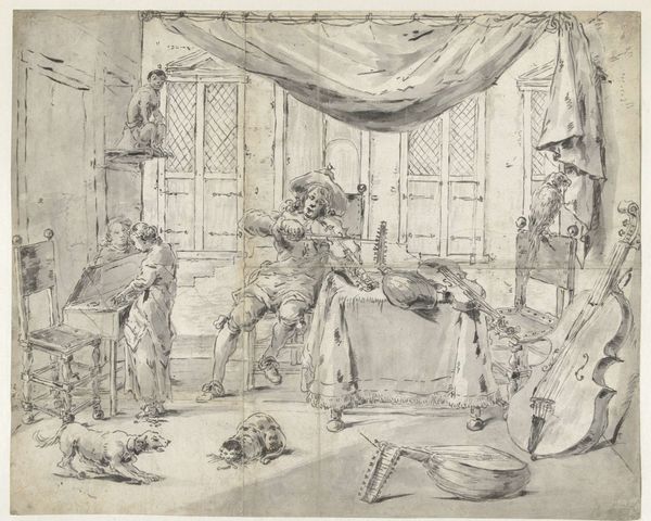 David Roberts created 'Zoldervertrek, ingericht als atelier' using watercolor, a medium known for its portability and immediacy. But why choose to depict a scene so laden with history and perhaps even melancholy? The artist uses the fluidity of watercolor to evoke a sense of decay and transience. Look at how the pigment pools and bleeds, suggesting the dust and shadows of an attic space. The sword, shield, and armour, rendered with delicate washes, speak to a bygone era of craftsmanship and warfare, now relegated to a forgotten corner. Roberts was an elected member of the Royal Academy, and well-versed in the visual rhetorics of fine art, but also a commercial artist sensitive to the tastes of a growing middle class. It is reasonable to assume that this image appealed to those interested in the process of art, with a desire for connection to the past, and the labor that brought culture into being. Paying attention to the materials and their manipulation allows us to appreciate Roberts' skill, and the complex social context in which he was working.