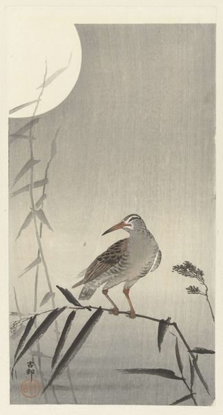 Curator: This woodblock print, "Seagull on Rock," by Ohara Koson, made sometime between 1900 and 1910, presents a tranquil coastal scene. What strikes you initially? Editor: The stillness is profound, almost unnerving. Even with the depicted motion of the waves, and the suggestion of air by the flying birds, the piece feels very self-contained and introspective. There is no visible horizon and the image is flattened. The limited tonal range certainly reinforces this sense. Curator: Yes, it's a study in restraint. Koson manipulates line and color to create depth and movement, even as the composition remains relatively flat. Observe the precision of the linework in the feathers of the central seagull against the abstract splash of the water, and how it juxtaposes solid form and ephemerality. Editor: That ephemerality reads more politically to me. I can't help but see a metaphor for the precariousness of existence in the face of overwhelming forces – economic instability, environmental threats... The singular gull confronts this immense, unpredictable body of water. Curator: I appreciate that reading, although the aesthetic qualities suggest a controlled rendering. I find Koson highlighting formal tensions. Look, for instance, at how he creates a contrast between the solidity of the rock and the fluidity of the sea. It's this kind of precise relationship of forms that lends structure and coherence to the image. Editor: Right, but that sense of control also evokes something more sinister, no? Historically, who is it who has had the means to shape and contain unruly nature? Curator: While that viewpoint certainly speaks to our contemporary sensibilities, viewing the work in that frame neglects, perhaps, the traditional conventions of ukiyo-e art with its celebration of the natural world and its emphasis on the artist’s compositional skill. Editor: But should art, particularly art dealing with such stark natural forces, be hermetically sealed from reflecting or responding to societal power dynamics? Doesn't Koson’s selection of imagery speak directly to these themes, regardless of intended interpretation? Curator: These alternative interpretations enrich our understanding and offer new perspectives, moving beyond solely aesthetic parameters. Thank you. Editor: And the interplay between form and context remains compelling. I have renewed insight from our conversation.