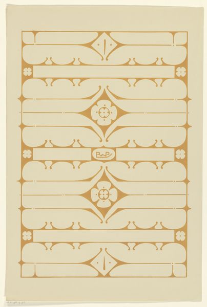 Editor: So, this is a textile design – quite literally titled "Textile Design with Alternating Horizontal Garlands of Branches with Abstract Swirls and Rosettes" – dating back to 1840. It's currently housed at The Met, but the artist is unknown. It gives me a slightly haunting vibe, like something you'd see in an old Victorian parlor. What catches your eye about this design? Curator: Haunting indeed! It’s as if the botanist who drew it stepped out of a Poe story! Those spiraling rosettes…do they remind you of anything? I almost see galaxies collapsing or maybe a particularly bad hair day magnified under a microscope. Editor: Absolutely! They're almost microscopic in their detail. What's the cultural context here? What would a textile like this have meant in 1840? Curator: Well, it shouts Romanticism, doesn’t it? The fascination with the organic, but also, for me, the control within that organic expression – the almost obsessive repetition…it makes you wonder if the artist was reflecting the rigid social structures of the time even as they were exploring the beauty of the natural world. Maybe a subtle rebellion woven into the very fabric…literally! Editor: I hadn't thought about it as rebellion, but I see your point. It’s a pretty restrained design in terms of colour – just a few shades – but those swirling motifs are certainly eye-catching. It makes you wonder if that contrast between restraint and bold design was intentional. Curator: Intentionality is always a tricky question, isn’t it? Maybe the artist was just doodling while their mind wandered to forbidden loves or revolutionary ideas…It's amazing what a 'simple' pattern can reveal. Editor: This was an eye-opening view; I hadn't considered those layers. It certainly does prompt one to think deeper.