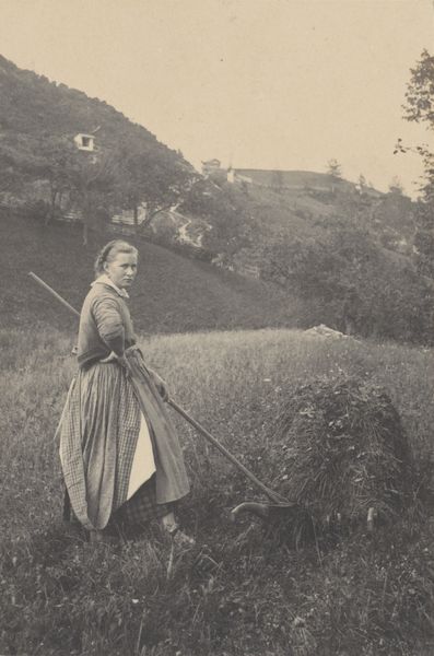 Alfred Stieglitz captured "The Harvest, Mittenwald" with a camera, rendering the scene in tones of sepia. The photograph features a young woman in a field, shielding her eyes, with a rake resting by her side. The composition is structured by diagonals, from the hill in the background to the rake in the foreground, drawing the eye across the scene. Stieglitz was not merely documenting reality; his use of light and shadow, and the textural contrasts between the woman’s clothing and the surrounding landscape, imbue the scene with a sense of depth and tactile presence. The image challenges the prevailing pictorial conventions through its engagement with realism. The formal arrangement – the woman’s gaze, the angle of the rake, the slope of the hill – creates a visual network that invites ongoing interpretation. "The Harvest, Mittenwald" remains a powerful example of how photography can transcend mere representation to engage with broader questions of perception and meaning.