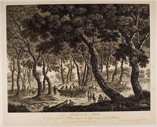 Editor: Here we have Fabio Berardi's "Woody Scene." With all the people and animals, it has the feeling of a busy landscape. What do you see in this print? Curator: As a materialist, I look at the labor involved in creating this image. Consider the engraver's skill, the paper production, and the distribution networks. How did its materiality shape its meaning and accessibility for its audience? Editor: That's interesting. So, it's not just about the scene itself, but about the physical creation and the social context of its making? Curator: Precisely. The print's production and circulation become integral to understanding its historical and cultural impact. It makes you think about who had access to art like this. Editor: I never really thought about it that way before. Thanks for expanding my perspective. Curator: My pleasure. It's all about looking beyond the surface.