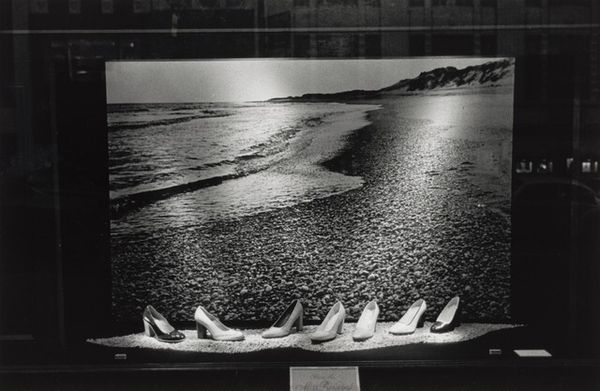 Editor: This is Richard Gordon's black and white photograph, "Santa Cruz, California," possibly taken between 1973 and 1994. I’m struck by the composition, how it's divided so starkly between this dark, almost oppressive interior space and the expansive, though somewhat bleak, beach scene outside. What do you see in this piece? Curator: I see a yearning, maybe, for escape. Or a profound awareness of being caught between worlds. The rigid geometry of the interior clashes with the organic form of the beach, that relentless ocean pulling our gaze outward. It feels deeply personal, doesn't it? I almost wonder if Gordon felt a similar pull between, say, his inner life and the bustling world just beyond the frame. Editor: That’s a great point. The window acts almost like a painting within the photograph itself, drawing a line between reality and an imagined space. Did Gordon work a lot with these kinds of internal/external dichotomies? Curator: That’s a question I often ponder! Many of his photographs play with framing – doorways, windows – as a way to explore not just the seen, but also the unseen, the implied, and the intensely felt. The darkness surrounding the room in the photo also evokes solitude, as if this particular corner of the world exists almost out of time. This could be an enduring portrait of the Santa Cruz that only existed inside Gordon. It invites us to see the world the way he felt it. What is it you will now feel whenever you see Santa Cruz after this moment? Editor: I think I’ll always see this photograph in my mind's eye – this specific, personal vision of Santa Cruz – even when I'm actually there. Curator: Precisely. A photograph, then, becomes more than a depiction – it’s an echo, a trace of a feeling. Editor: Well, I'll certainly look at landscape photography differently from now on.