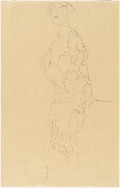 Gustav Klimt made this drawing, Portrait of a Woman, with graphite on paper, and right away I’m struck by how light and tentative the marks are. It feels as though the image is emerging, ghost-like, from the paper's surface, a process of searching and finding. Looking at the way Klimt uses line, there's a real sense of fluidity. The lines of her robe, for instance, flow around her body, hinting at the patterns without fully defining them. Those spiraling, rose-like shapes are almost like thoughts or emotions, swirling around her. And notice how her face is barely there, just a few delicate lines suggesting her features. It's like she’s present and absent at the same time. This reminds me of other artists like Schiele, who also used the figure to explore states of feeling. It's a reminder that art isn't about capturing a fixed reality but about embracing ambiguity and the endless possibilities of interpretation.