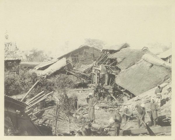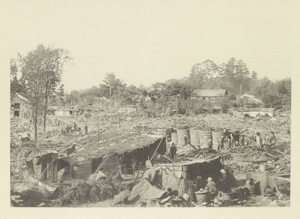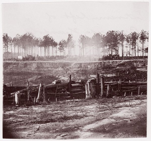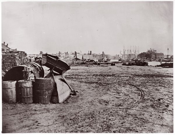 Editor: So, this is Andrew Joseph Russell's "Falmouth, Virginia. Abandoned Camp" from 1862. It’s a gelatin-silver print. It strikes me as incredibly desolate. What can you tell me about this image? Curator: The desolate feeling is key. Consider the date: 1862, during the Civil War. Photography served a powerful public role then, documenting a divided nation. Russell, working for the Union Army, wasn't just capturing a scene; he was framing a specific narrative for the public and for posterity. Editor: So, you’re saying the 'abandoned' camp isn’t just a description, it’s a message? Curator: Exactly. What kind of message do you think it's sending? The bare landscape, the seemingly hastily left encampment, what does it suggest about the conflict and those who fought? The politics of imagery are really important here; whose story is being told, and how? Editor: It seems to convey a sense of disorder and the human cost of war – almost like a hastily made decision to abandon everything. Curator: Precisely. The chaos is evident, but is it a fair representation, or a constructed narrative? Were photographs like this used to sway public opinion, justify actions, or perhaps even solicit sympathy? Think about the social context, and the ways in which photography was used as a tool of power during the war. Editor: So much to think about… I hadn’t considered how staged or influenced Civil War photography could have been. I suppose that makes sense. Curator: It's a reminder that even seemingly objective media have biases and intentions behind them. The war wasn’t just fought on the battlefield. Editor: Right, understanding the historical context helps unlock even more meaning in this picture. Thanks, this was incredibly insightful!