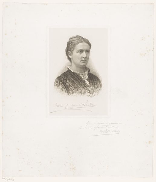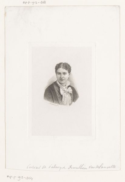 Curator: Here we have a drawing titled "Portret van een onbekende jonge vrouw, mogelijk de zus van Emile Spruyt," or "Portrait of an unknown young woman, possibly the sister of Emile Spruyt," created in 1894 by Emile Pierre Maria Spruyt. Editor: Isn't she lovely? She has a delicate, dreamlike quality that just pulls you in. The portrait feels so intimate, almost like stumbling upon a private moment. Curator: The piece invites us to consider the limited agency women often had within 19th-century portraiture. Do we view this work merely as a physical likeness, or can it represent her silent experience? It appears the subject, potentially Spruyt’s sister, embodies this restricted gaze. Editor: Absolutely. I feel her vulnerability, sure, but there's also an unmistakable glimmer of determination in her eyes. A flicker, perhaps, of inner rebellion? It feels incredibly modern, doesn’t it? Curator: Indeed. Looking at this piece now through the lens of intersectional feminism, one is keen to wonder about class and societal expectations of women. Spruyt created this during a pivotal period, when the first wave of feminism gained traction in Belgium. Editor: The subtle shading, the way the light catches her hair...it all contributes to a narrative beyond just a face on paper. It's more than just technique; it's an atmosphere he's crafted. A quiet but powerful mood. It also strikes me: I want to know her secrets. Curator: Agreed. Spruyt, in his careful detailing, does humanize his subject beyond the male gaze, granting her a kind of interiority seldom seen at the time. While rooted in tradition, the portrait hints at an emergent modern consciousness, one in which female subjectivity begins to claim space within the visual arts. Editor: It makes you think about all the unrecorded histories, doesn't it? All the quiet acts of resistance in those long ago drawing rooms. This seemingly simple sketch is more revolutionary than it first appears. Curator: Yes, the quiet resistance echoes across the years, underscoring art's powerful ability to encapsulate historical tension and transformation, providing nuanced perspectives on female identity beyond societal norms. Editor: Thanks. This gives a person something solid to chew on. I leave this spot richer.