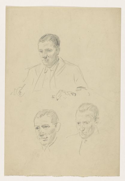 Anton Abraham van Anrooy made these portrait studies for the unfinished painting of the Dutch court in London in June 1942. There's a lightness to the touch here, a real sensitivity in the mark-making, which feels quite modern in its approach. Look closely, and you'll see how he's captured the fall of light on the figure, using delicate lines to suggest form and volume. The pencil strokes are so economical, almost tentative, but they build up to create a compelling image. The texture of the paper is also important here. It gives the drawing a kind of warmth and intimacy, like we're looking at a page from the artist's sketchbook. The notes at the bottom of the sheet make you wonder what the intention was for the finished work. The work as a whole feels like it could have been made by Lucian Freud, who was also interested in the psychological dimensions of portraiture. It's a reminder that art is an ongoing dialogue.