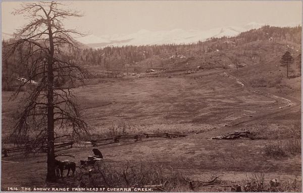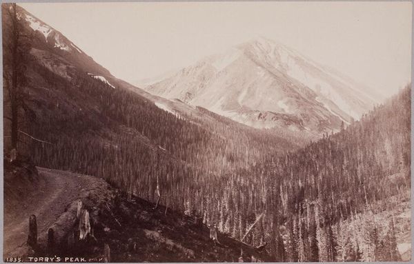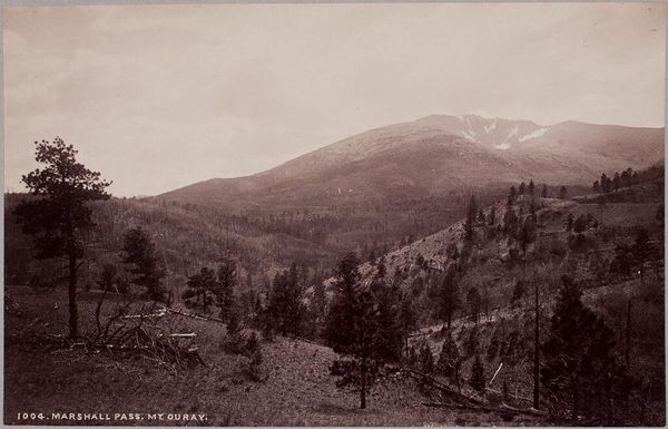 Editor: This is "Summit of Marshall Pass" by William Henry Jackson. It's a vintage photograph, and I find the landscape quite stark. What stands out to you? Curator: Jackson's photographs played a key role in shaping the image of the American West. He captures the sublime, yes, but consider the cultural context. What does it mean to document the "summit" of a pass? Who benefits from this passage? Editor: So, it’s not just a pretty picture, but also about the impact of westward expansion? Curator: Precisely. These images were often used to promote settlement and resource extraction. The "frontier" narrative served very specific socio-political ends. Editor: I never thought of landscape photography that way before! Thanks. Curator: My pleasure. Thinking about the cultural impact adds a new layer of understanding.