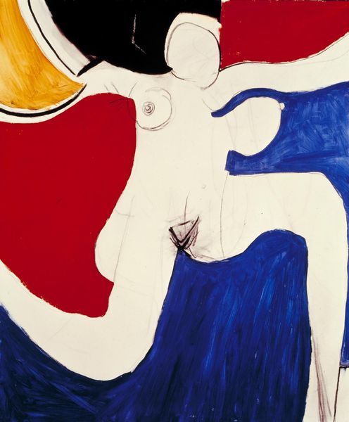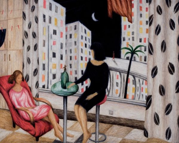 Mark Kostabi made "I Did It Steinway" in 1998, using, what looks like, an airbrush to apply the paint. There's a smoothness to the gradations between colours, the planes rendered in blacks, blues and reds. I love the way Kostabi uses this method to show, rather than conceal, the making of the painting. The figure here is a study in contrasts, it's faceless, sitting hunched, and chained at the ankle to a heavy weight. The chains are rendered with an almost classical smoothness and detail. But the stool is made of these blocky shapes. The piano too, is angular and simplified. It makes me think of early Philip Guston, or maybe even some de Chirico. I am moved by the tension between the figure's constraint and the exuberance of colour and tone. It's art making as a form of both expression, and maybe, even, escape.
