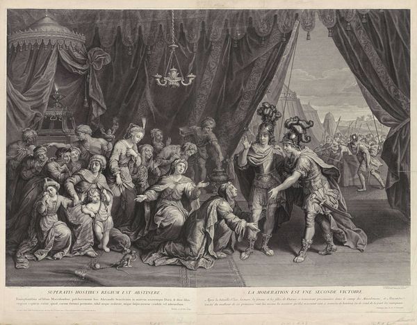Curator: Edvard Lehmann's 1840 lithograph, "Thorvaldsens Hjemkomst," captures a moment of exuberant return. It's currently held at the SMK, Statens Museum for Kunst. Editor: My immediate impression is one of celebration, even euphoria. There's such dynamism in the composition, heightened by the contrast of dark shadows and bright highlights, all skillfully achieved through lithography. Curator: Indeed. Lehmann's meticulous technique invites a deep formal analysis. Note the receding perspective, anchored by the strong horizontal line of the harbor. The interplay of light and shadow emphasizes texture, guiding the eye across the complex arrangement of figures. Editor: Looking beyond the formal elements, it speaks volumes about 19th-century nationalism and hero worship. Thorvaldsen’s return was more than a homecoming, it symbolized a rebirth of Danish cultural identity after a period of decline. His art and his person were being celebrated as national treasures. Curator: I see the artist strategically employed classic Romantic strategies like a rainbow as compositional devices. What effect is created by the high horizon line in juxtaposition with the diminutive scale of individual characters in the scene? Editor: But within that "diminutive scale" are diverse social positions—children, clergy, military figures, and apparent commoners. It speaks to a unification of Danish society. Their collective act of hailing Thorvaldsen obscures how access to and production of art was profoundly shaped by wealth and status. It’s important to note the limitations of “national unity” when class structures were highly defined and regulated at this moment in Denmark’s history. Curator: This piece illustrates a precise deployment of pictorial structure creating what is a propaganda statement of values. Editor: It's that layering that makes art so potent. We've seen how form and content operate within intersecting ideological frameworks. Understanding both allows us a far deeper encounter with the art and history.