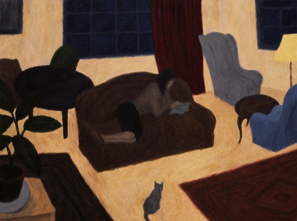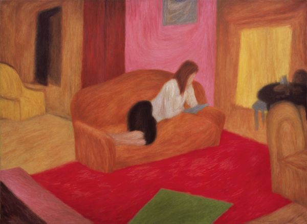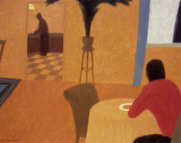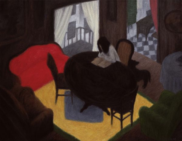 Iwo Zaniewski made this painting, ‘The Red Room,’ using oil on canvas. The work depicts a woman standing by a window in a red room. A table with a white cloth sits in the center, while a curious black stovepipe snakes its way up the wall. This interior evokes a sense of domestic unease. The intense red color and the awkward placement of objects create a slightly claustrophobic atmosphere. Zaniewski was born in Poland. We might consider the country's history and cultural context to better understand the painting. During Zaniewski's life, Poland was under communist rule. Perhaps this work hints at the constraints and tensions of life in such a society. The red room itself could be a symbolic reference to the political environment. The woman by the window might be yearning for something beyond the confines of her immediate surroundings. To fully grasp the layers of meaning here, one might delve into Polish history, literature, and art of the period. Art doesn't exist in a vacuum. It's a product of its time and place, shaped by social, political, and cultural forces.