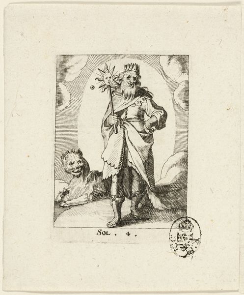 Claude Mellan created this print of H. Petrus using engraving techniques sometime in the 17th century. The composition is dominated by the figure of Saint Peter, rendered with a meticulous network of lines that define form and texture. Mellan masterfully employs line to create a sense of depth and volume, especially noticeable in the drapery and the saint's facial features. Consider how Mellan uses a semiotic system of signs to convey meaning: the keys held by Saint Peter are not merely objects but symbols of his authority within the Church. Notice also how Mellan plays with light and shadow, creating stark contrasts that heighten the dramatic effect. The background, with its suggestion of landscape, serves to frame the central figure, but it is the density and direction of the engraved lines that truly capture our attention. Ultimately, this print functions not only as a religious icon but also as a display of Mellan's technical skill. The rigorous structure of lines allows for a complex interplay of visual elements. It invites us to decode the artistic language of the image, engaging with its historical and philosophical underpinnings.