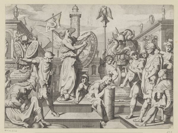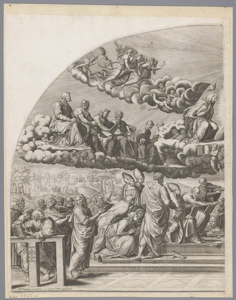 This allegorical engraving showing soldiers and the coat of arms of the Medici family was made by Claude Mellan, a French artist, in the 17th century. The image offers an insight into the political and social dynamics of the time, particularly the glorification of powerful families like the Medicis. It prompts us to consider the role of art in constructing and reinforcing social hierarchies. Here, the Medici's power is presented as divinely ordained, as suggested by the celestial arrangement of their coat of arms in the sky. We see this form of self-aggrandizement frequently in aristocratic portraiture of the time. Engravings such as this served as propaganda, subtly shaping public opinion. It’s crucial to remember that artistic creations are not made in a vacuum; they’re products of their social and political context. To understand this artwork better, we can delve into the history of the Medici family, the political climate of 17th-century Europe, and the conventions of allegorical representation. By studying these factors, we gain a richer appreciation of the complex interplay between art and society.