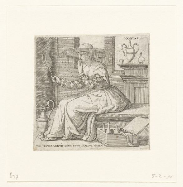 Editor: Auguste Danse created this etching, "Baby in bed bij de ouders huilt vader wakker," or "Baby in bed with parents, father awakes," in 1896. The mood is incredibly raw; what strikes me most is how vulnerable everyone seems. What do you see in this piece? Curator: It’s fascinating how Danse captures such a primal scene with etching, a medium that relies on linear precision. The image pulses with layers of symbolism, doesn't it? Consider the father's awakening – it isn't just physical, it's a rude interruption. He’s been wrenched back from a state of unconsciousness by the demanding cry of new life. Notice the mother too, in shadow, perhaps representing the unseen labor. How does that emotional layering speak to you? Editor: That tension between the visual simplicity and emotional depth is striking. So, the parent's interrupted slumber reflects a disruption of the established, comfortable self? The loss of their own unconscious freedom? Curator: Precisely! And there’s cultural memory at play here, the universal symbol of familial duty. The domestic space is rendered almost claustrophobic. What might that evoke in our understanding of turn-of-the-century familial pressures? Editor: That makes me think of the constraints placed on parents. Thank you, seeing it through that symbolic lens helps me understand how potent even seemingly simple images can be! Curator: My pleasure! It highlights how artistic representations carry the weight of human experience, generation after generation.