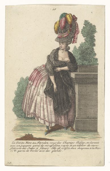 Editor: Here we have "Mrs. Fitzherbert," an engraving dating back to 1786. It's a formal portrait, very poised. It gives me a sense of… contained energy. What do you see in this piece? Curator: Oh, "contained energy" – I love that! It makes me think of champagne right before the cork pops! To me, this piece speaks volumes about societal expectations placed upon women in the Rococo era, all that powdered hair! It's like looking at a beautiful bird in a gilded cage. I wonder, do you feel the landscape, though muted, hints at a desire for freedom? Editor: Definitely, there is a sense of her being literally framed by it, separated but yearning. And is it my imagination, or is the rendering a little…unfinished? It feels less polished than other portraits of the period that I’ve seen. Curator: Exactly! It's the beauty of the engraving technique. The lack of heavy color lends a subtle air of informality, despite her grand attire. Makes you think – who was she, beyond the portrait? Beyond what society wanted her to be? I get the feeling that, just perhaps, there was someone far more rebellious. Don't you agree? Editor: It’s fascinating how the artist manages to suggest that rebelliousness with such restraint! The tight smile gives it away! Curator: That it does! The piece almost becomes a visual whisper, a secret shared between the artist and the viewer across centuries. Think of what’s concealed within its lines. Delicious. What are your feelings now? Editor: Now, I want to know everything about Mrs. Fitzherbert! And I never thought an engraving could be so emotionally charged.