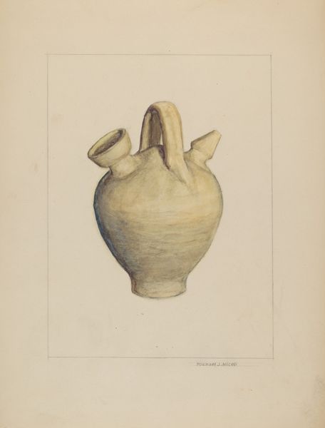 Archie Thompson made this 'Powder Flask', and it looks like he used watercolours, maybe with a bit of gouache for opacity. It’s a straightforward, almost diagrammatic rendering of the object, but it has this lovely, soft glow to it. Look at the tonal variations, how Thompson uses the colour to build up the form. There's a great sense of light and reflection off the surface of the flask. It's so precise, but not cold. I think of other artists like Alex Katz, who find something profound in the everyday. Thompson has done that here, capturing the essence of this functional object, elevating it. It's a testament to the power of observation, and how art can transform the mundane into something beautiful.