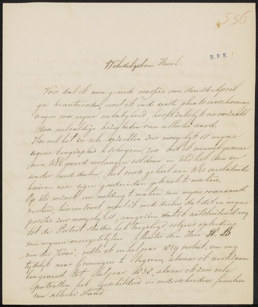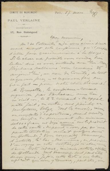 Curator: We are looking at "Brief aan Philip Zilcken," possibly created between 1886 and 1887 by Arij Prins. It's an ink drawing on paper, essentially a handwritten letter. What's your initial impression? Editor: My first impression is intimacy. It feels like peering over someone’s shoulder as they craft a message. The delicate, spidery quality of the handwriting certainly contributes to that feeling. Curator: Considering the medium, ink on paper, and the date, we can assume this was a personal correspondence, probably involving artistic or literary circles, judging by the legible references within the letter itself. The paper would have been chosen deliberately, affecting how the ink flowed and set. Editor: Yes, and notice the calligraphic quality of the handwriting. It elevates a simple letter to an art form. The careful loops and flourishes around the edges are suggestive of deliberate attention, not just scribbling off a note. There's a rhythmic, almost musical quality to the script as well. The overall presentation echoes refinement and care. Curator: Exactly. Even the act of handwriting, compared to typeset text, adds a layer of human touch and personal labor. And consider the availability and cost of paper and ink at the time. These factors speak to the value placed on communication and artistic expression. Editor: Also, I wonder about the recipient, Philip Zilcken. Was he a confidante? Perhaps a patron of Prins? I see something of Esther mentioned towards the end. There’s definitely some intimacy being offered to the recipient. Curator: Further study into Zilcken's relation to Prins and the handwriting would give insights into how information was disseminated and the labour involved. This isn't just a passive object. Editor: I see that, and I find the notion of this artifact—this personal missive, surviving through time—really very resonant. The emotional investment of artist is apparent through handwriting, transforming the document. Curator: Absolutely. A deeper look into these components reveals layers of value related to labour and exchange in that historical period. Editor: Precisely. I find it beautiful to see the depth held within this historical form.