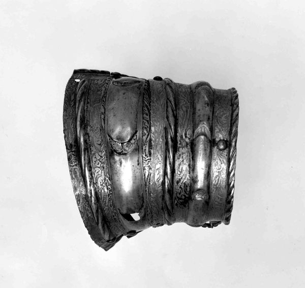 Editor: These are Domenico Negroli's "Arm Defenses," crafted from metal between 1485 and 1535. Looking at the cold, hard material, I can't help but think about the relationship between protection and vulnerability. What do you see when you look at these arm defenses? Curator: These "Arm Defenses" are a fascinating intersection of craftsmanship and social identity. They’re not just metal; they represent power, status, and the performative aspects of masculinity in the Renaissance. Consider the societal role of the armored knight during that period – what does this say about the visual language of authority? Editor: I guess they aren’t just about protection, they are a symbol of authority. Do you think the artistry changes the function? Curator: Absolutely. Armor was not purely functional, but often elaborately decorated, reflecting the wearer's wealth and social standing. These defenses can be seen as sculptural portraits, extensions of the wearer’s persona. The labor and resources involved highlight social stratification, marking a divide between those who could afford such protection and those who could not. How do you see this playing into modern day issues? Editor: It's interesting to think of armor as a status symbol when now a status symbol may be something less "functional," but obviously symbolic in our era. These have both aspects of real and symbolic protection. Curator: Exactly. Thinking about historical context allows us to explore these objects beyond their face value, examining broader issues of power, identity, and social hierarchy, that, even today, shape much of our experience. Editor: I've never considered the power dynamics inherent in historical fashion. It certainly gives me a lot to consider as I study portraiture.