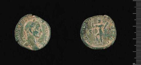 Curator: Before us, we have a fascinating artifact: a "Coin of Claudius II Gothicus?" currently residing in the Harvard Art Museums, weighing a mere 2.57 grams. Editor: The patina immediately strikes me – a sort of verdigris overlaid on the reddish-brown metal. You can almost feel the labor and time etched into its surface. Curator: Indeed. The coin offers a fascinating study in the symbolic language of power. Note the figural representation, the inscriptions that frame the imagery; these are carefully constructed visual statements. Editor: And consider the social implications! Each coin, produced en masse, represents a moment of exchange, a transaction of power and value within the Roman system. The act of striking the metal, of distributing these objects, is itself a performative act of the state. Curator: True, but let us not lose sight of the semiotic structuring at play. Each element functions as a signifier in a complex system of representation. Editor: Well, I am struck by the physical act of making it. Who handled this? How many hands did it pass through? Curator: A productive tension, wouldn't you say? A dialogue between object and idea, matter and meaning. Editor: Absolutely. It is more than just a coin; it’s a tangible fragment of history.