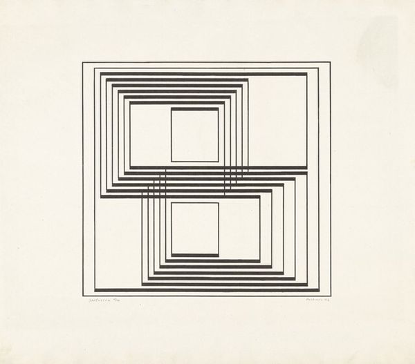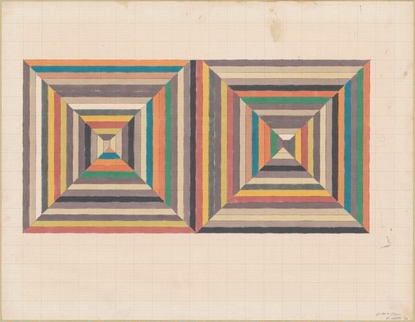 Frank Stella made 'A through L Colored Maze' with colored pencil, probably sometime in the sixties. It’s a geometric composition that seems to vibrate with a kind of optical energy. The colored pencil lines are carefully drawn on graph paper. You can see the grid underneath. The lines are straight, but because of the softness of the medium, they have a gentle, slightly uneven quality, like a heartbeat. The colors, alternating blues, yellows, reds, greens and purples, are quite vibrant. They play off each other, creating a sense of depth and movement. Look closely, and you'll notice that some of the lines are thicker than others. This gives the maze a sense of rhythm and variation. The drawing is related to Stella's paintings, which often feature geometric patterns and bold colors. But the drawing has a more intimate feel, like a sketch or a study. You could also relate it to the work of Sol Lewitt, who explored geometric abstraction with a similar sense of rigor and playfulness. Art is just talking to each other, right?