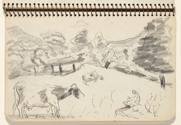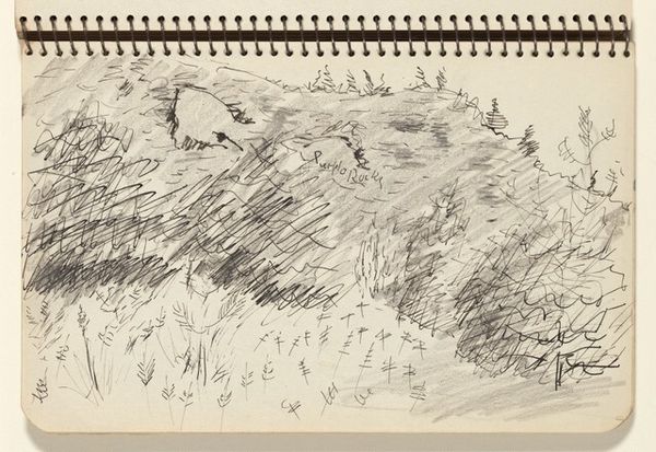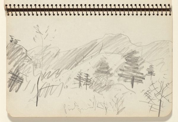 Editor: This is Milton Avery’s “East Jamaica Road,” created in 1943. It’s a graphite and pencil drawing on paper. It has a real sketch-like quality; very immediate. What do you see in this piece? Curator: I see the power of suggestion in Avery's quick notations. In the context of 1943, while the world was consumed by conflict, consider the implications of representing the landscape so freely. It reminds me that even during times of immense political upheaval, the mundane – a roadside view – continues, offering a quiet counterpoint to the grand narratives of history. Editor: That’s interesting! It feels more like an escape. Why do you call it "political?" Curator: Not necessarily overtly political, but think about the institutions that supported and validated this kind of modernist representation. Were there patrons, galleries, or critical voices that championed art removed from direct social commentary? And what does that say about the perceived role of art in wartime society? Was it seen as escapism, resistance, or something else entirely? Editor: So you're saying that *not* being about the war *is* actually saying something? The choice of subject, like where it was exhibited or reviewed, would have meant something to people at the time? Curator: Exactly. We can examine how art like this was discussed, collected, and displayed to understand how it functioned within the cultural and political landscape of its time. Editor: That gives me a new perspective on this simple sketch. I’d only thought about how it looked! Curator: And now you see that its historical context helps us understand not just what it depicts but how it participated in a larger cultural conversation.