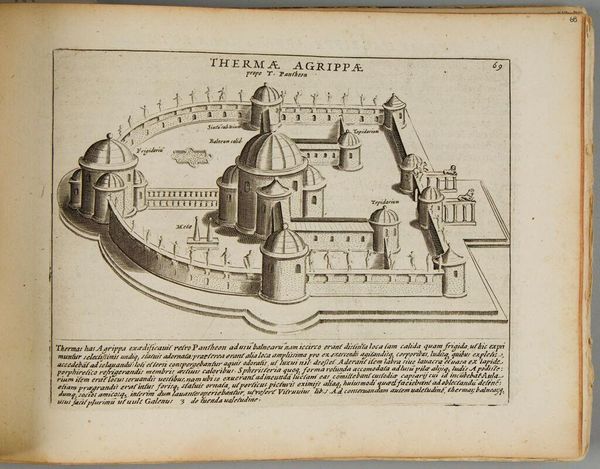 This anonymous print, “Baths of Agrippa,” is an engraving on paper, part of a series called “Speculum Romanae Magnificentiae,” or Mirror of Roman Magnificence. The image shows a bird’s eye view of the baths, and the names of the different rooms are carefully labeled in Latin. It was made in Rome, at a time when the city’s ancient history was being rediscovered. The print embodies this renewed interest in classical antiquity, driven by the humanist movement and papal patronage. This print served not just as a record, but also as a source of inspiration for contemporary architects and artists. The engraver looked at the baths' ruins to create a faithful depiction of the ancient structure, making informed choices about its design and layout. The social role of this print was to disseminate knowledge and stimulate interest in the architectural achievements of the Roman Empire. Today, art historians study prints like this alongside archaeological reports, architectural treatises, and social histories to get a better sense of the ways in which classical antiquity shaped early modern European culture.