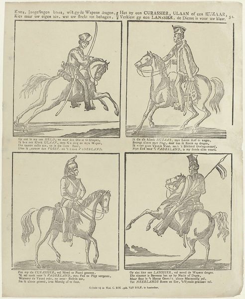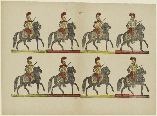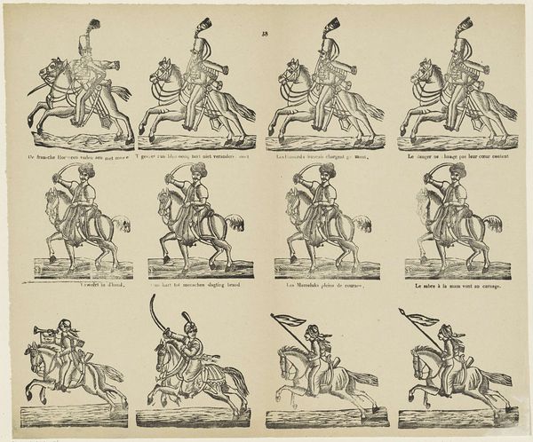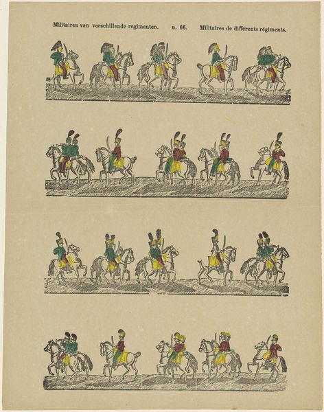 M. Hemeleers-van Houter created this print of soldiers on horseback sometime before 1880. It’s made with a printing process, likely etching or engraving, which involves meticulously incising lines into a metal plate. Consider the implications of this method. Each line is a deliberate act, requiring skilled labor and time. The resulting image, while seemingly simple, embodies a wealth of decisions about composition, line weight, and detail. And because it’s a print, it could be reproduced many times over. This speaks to the rise of visual culture during the 19th century. These weren’t traditional ‘art’ materials, yet Hemeleers-van Houter clearly engaged with skilled traditions. By thinking about its making, we can see how it participates in a much wider conversation about labor, reproducibility, and the circulation of images, inviting us to reconsider what we value in art.