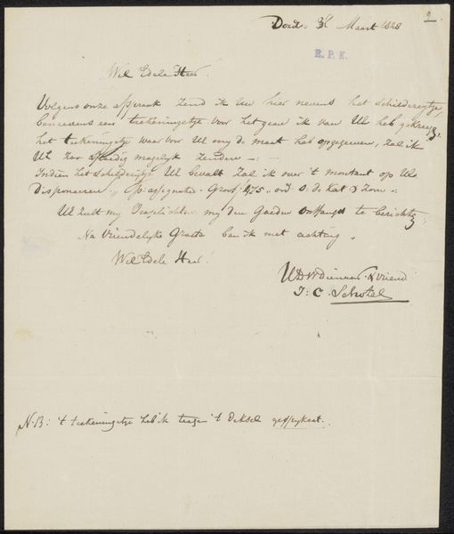 This is a letter to Philip Zilcken, written by N.J. Singels on paper with ink. The composition of the letter reveals a deliberate hierarchy of information. The date is placed at the top, followed by a greeting. The handwriting, with its varying pressure and rhythm, creates a textured surface. The script's flow is interrupted by smudges and inconsistencies, drawing attention to the materiality of the writing process itself. The letter's content, while personal, hints at broader cultural and artistic exchanges, reflecting the networks within the artistic community. The mention of an exhibition reveals the structural framework of the art world, where artists, exhibitions, and patrons intersect to create meaning and value. Ultimately, the letter serves not only as a means of communication but also as a cultural artifact, inviting us to consider the relationship between language, art, and society.