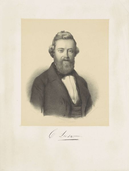 Editor: This is a print called "Portret van baron Henri Leys," possibly from 1869, by Etienne Gabriel Bocourt. It's an engraving, and the detail is incredible. There's something quite stern and imposing about the Baron; what catches your eye when you look at it? Curator: Well, aside from that magnificent beard!, I'm drawn to the print's reliance on an earlier photographic image. Think about it - the print isn’t “directly” from life but mediated, filtered. So what layers of ‘truth’ are at play here? Bocourt, in rendering the photo into a print, imbues Leys with an almost theatrical gravitas. It’s history, seen through the lens of both photography and engraving— a kind of historical double exposure. Editor: A double exposure, I love that. So, is it accurate to call this a straightforward portrait, then? Considering all those layers? Curator: Accurate in its resemblance, perhaps. But art seldom just replicates; it interprets, elevates, sometimes even mythologizes. Bocourt seems less interested in mere likeness, and more interested in portraying Leys as a figure of consequence, a man etched – quite literally – in history. It makes me wonder what the original photograph was like... Did it capture this level of intensity? Editor: That's a good point. Maybe the sternness comes from Bocourt himself. He amplified something already present in the photograph. This has made me consider portraits as more than just representations! Curator: Exactly! They're dialogues, reinterpretations, conversations across time and media. Now, every time you look at a portrait, what questions will *you* bring to it?
