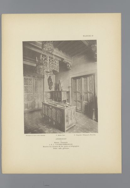 G. Choppinet made this photograph of a room in the Brussels home of the sculptor F. Malfait. What we see here is a self-conscious display of wealth through careful control of historical style. Looking at this image, we see that its owner is deliberately evoking the past in the arrangement of objects and space. The fireplace, the chandelier, the sculpture, and even the desk are all meant to create a particular impression. It's like walking onto a stage set for a play about the good old days. But who exactly is trying to be convinced here? Is it the owner, or is it his visitors? And who gets to decide what makes the "Flemish style" good? Perhaps the photograph itself is designed to be a symbol of status and taste for circulation in a particular social circle. To understand this image better, we'd need to dig into the social and cultural history of Brussels at the time, as well as the networks of artists, collectors, and patrons who were shaping ideas about national identity and artistic heritage.