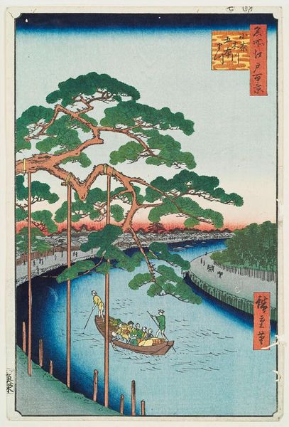 Utagawa Hiroshige created this woodblock print, Yokkaichi, in Japan as part of his series "Fifty-three Stations of the Tōkaidō," a popular subject in ukiyo-e prints. This print captures a scene from the Tōkaidō road, the main route connecting Edo, now Tokyo, with Kyoto, the imperial capital. The image presents a snapshot of daily life in Yokkaichi, a bustling post station. We see travelers crossing a bridge, figures engaged in leisure, and the distinct architecture of the time. The Tōkaidō road was not just a route for travel; it was a vital artery for commerce, culture, and communication. Hiroshige’s series gained popularity, reflecting a growing interest in landscape and travel among the middle classes. As art historians, we examine prints like this to understand the social and economic dynamics of 19th-century Japan. Resources like historical maps, travel logs, and demographic data provide context for these prints, offering insights into the public role of art in documenting and celebrating an era of transformation.