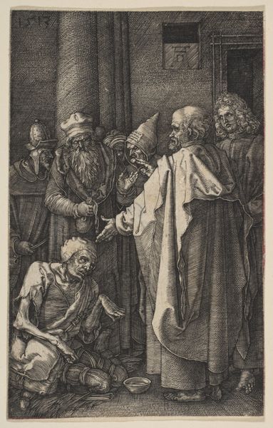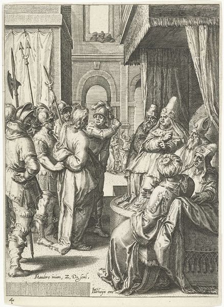 Albrecht Dürer's "Christ Before Caiaphas" is a stark black-and-white engraving, dominated by contrasting textures and meticulously rendered detail. The scene is thick with dread, the close proximity of the figures amplifying the claustrophobia. Dürer masterfully uses the stark contrast between light and shadow to create depth and drama. Linear precision characterizes the garments, faces, and weaponry, with close hatching emphasizing the emotional intensity of the moment. The visual tension lies in the composition itself: Christ is surrounded and constrained, while Caiaphas occupies a position of height and power. Dürer here destabilizes the traditional notions of religious authority. The viewer is compelled to question established meanings. The use of line and form serves not only an aesthetic purpose, but also engages with larger questions of justice, faith, and the abuse of power. Ultimately, this piece invites continuous reflection on the nature of truth and authority, and asks us to confront our own interpretations of this pivotal biblical narrative.
