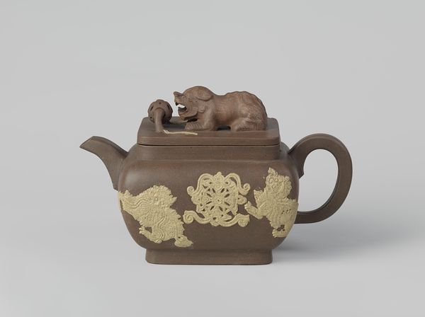 This delicate porcelain teapot was crafted by Christophe-Ferdinand Caron in the late 18th or early 19th century. Observe how the exotic scene is rendered: a white elephant under palm trees, accompanied by a figure, perhaps a handler. The elephant, a symbol of wisdom and strength, appears frequently in royal and religious contexts across cultures. In ancient Rome, elephants symbolized power and were used in triumphal processions. Meanwhile, in Buddhism, the white elephant is a sacred symbol, representing purity and mental strength. Here, its subdued coloration might suggest a certain passivity, a tamed strength, reflecting perhaps the colonial attitudes of the time. The exotic imagery speaks to a broader fascination with the "Orient," revealing a psychological landscape where the allure of the unknown meets the desire to control and categorize. Consider how this symbol, the elephant, once a beacon of power and divinity, transforms when placed within the confines of European decorative art. The symbol resurfaces, bearing the weight of cultural exchange and reinterpretation.
