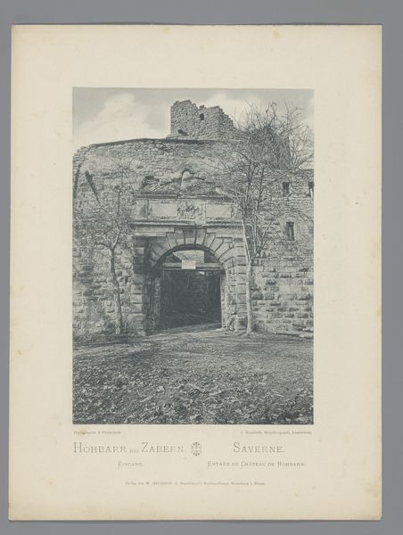 Curator: This is a gelatin silver print from before 1894 entitled “Gezicht op Château du Haut-Barr te Saverne,” by Charles Bernhoeft. Editor: The photograph projects an atmosphere of solitude and enduring monumentality. I'm immediately drawn to the contrast between the aged stones and the almost ephemeral figure of the woman. Curator: I am fascinated by the way Bernhoeft chose to present this location. The figure appears in the landscape and evokes Romantic painting. I see echoes of the Sublime and the picturesque and the figure suggests the ephemerality of human life against the backdrop of history. Editor: But beyond the Romantic echoes, think about the technology involved in crafting a gelatin silver print. This wasn't just snapping a picture; it involved laborious darkroom techniques, manipulating chemistry, carefully chosen paper… Bernhoeft wasn’t just recording a scene; he was actively constructing an image using then cutting edge science to depict a crumbling relic of the past. Curator: That's a good point. The very process he employed speaks to the relationship between the "now" and history. This château, which has weathered so many storms, and that woman tending the gardens is transformed by chemical means into something enduring that reminds us that time unfolds, bringing constant transformations in culture. Editor: And don’t forget the social implications of photography in this period. Bernhoeft wasn't some lone artist; he had clients, audiences, perhaps even patrons commissioning specific views of certain landmarks to promote tourism or regional pride. This print itself likely served as a portable memento, a symbol of access and connection to that place and social class. Curator: Indeed, understanding how photography democratized art while creating new forms of exclusivity certainly expands our comprehension of Bernhoeft’s goals in making this particular artwork. His sensitivity and skills capture both the subject’s physical aspects as well as deeper symbolic resonances, the allure of old places, perhaps a yearning to belong, an anchor in the landscape. Editor: Examining this image reminds us that art is so much more than just the final product. We need to understand both the hands that labored to make it and also the many hands who held the final piece. Only by understanding these dualities can the piece itself unlock a richer perspective on the human narrative.
