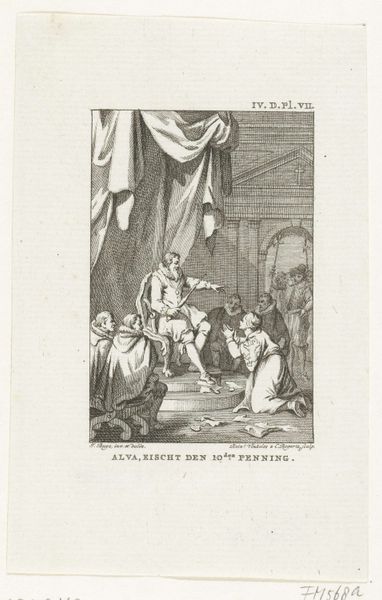 Theodoor Koning engraved this depiction of 'Jojada roept Joas uit tot koning van Juda' in the 18th century. Note the central figure of Jojada, the high priest, his arms spread wide in a gesture of declaration. This posture, reminiscent of ancient orators and religious figures, embodies authority. The raised arms signify divine endorsement and power, a motif that echoes across time. Consider its appearance in depictions of Roman emperors or even early Christian art, where similar gestures denote leadership and benediction. This pose, deeply embedded in our collective memory, transcends its immediate context. The act of 'raising up' becomes a powerful, recurring symbol. Psychologically, it taps into primal associations of strength, protection, and the bestowal of grace, resonating in our subconscious understanding of power dynamics. Here, the emotional impact is clear: a sacred proclamation, a transfer of authority that engages viewers on a visceral level. The symbol of the raised arm has persisted, evolved, and been reinterpreted, illustrating the non-linear, cyclical nature of cultural memory.