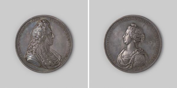 Editor: Here we have Johann Lorenz Natter’s 1751 bronze medal, "Overlijden van Willem IV," or "The Death of Willem IV." It's fascinating to see such a somber moment captured on what's essentially a coin. What can you tell me about the historical context of this piece? Curator: Well, the death of Willem IV was a significant event in Dutch history, marking a shift in political power. Commemorative medals like this served as important tools for shaping public memory and constructing narratives around leadership. Note how the medal likely functioned within a specific political landscape, intending to reinforce specific views and allegiances to the Oranje lineage. Editor: I see… So the choice of imagery – the portrait, the allegorical figure on the reverse – would be carefully considered for its impact? Curator: Precisely! Consider the stylistic choices. It aligns with Neoclassicism, but does it embrace the aesthetics fully, or does it serve a particular political message? The controlled style, and classical allusions serve to reinforce concepts of stability and legitimacy amidst transition, which speaks volumes. What impression do you get from that allegorical female figure with a lion at her feet? Editor: It gives me the impression of the Dutch Republic in mourning, a bit of a national symbol there with the lion. Curator: Indeed. The circulation of such medals shaped public perception in a powerful way. Understanding the function of this type of portrait, or symbol in political discourse helps decode the imagery. Did the medal succeed in conveying its intended message, or was there dissent regarding this representation? Editor: That makes me wonder how such official art was received by different social classes at the time. Food for thought. Curator: Exactly! It reminds us to look at art beyond its aesthetic value and consider the social and political forces that shaped its creation and reception. Editor: I'll definitely keep that in mind moving forward.