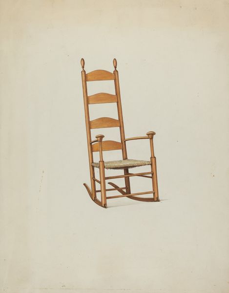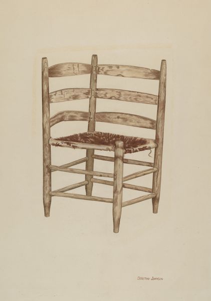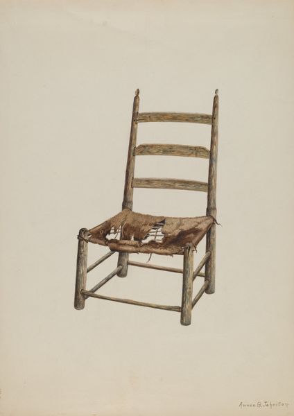 This is Manuel G. Runyan's "Handmade Chair - Rawhide Seat," but we don't know exactly when it was made. It looks like it was done with watercolor. I’m thinking about how the simplest things, like a chair, can hold so much quiet, unassuming beauty. Look at the way Runyan renders the worn texture of the rawhide seat – it’s all subtle washes and delicate layering. The muted palette of browns and tans, feels like it’s about the process of aging, of seeing something beautiful in the ordinary. The strokes are so careful, almost reverent. The chair is rendered with such soft, understated strokes. It’s like Runyan is inviting us to slow down, to really see the quiet dignity of this humble object. It reminds me of Agnes Martin’s work, in the way she used simple forms and a restrained palette to evoke a sense of calm and contemplation.