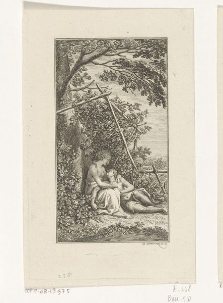 Oluf Bagge etched this print, "Forår", meaning "Spring" in Danish, in the late 18th or early 19th century. Here, a male figure tends to potted plants. He is youthful and carries a quiver, evoking Eros or perhaps a personification of Spring itself, amidst burgeoning life. This motif of a youthful figure amidst flora is ancient. Consider the classical depictions of Flora, the Roman goddess of flowers and spring, often portrayed scattering blossoms, or even Botticelli’s “Primavera,” where a similar figure leads the dance of the seasons. The act of tending plants, itself, carries deep symbolic weight. In countless cultures, the garden is a microcosm of the world, and its cultivation mirrors the human effort to shape and understand our existence. We see this longing, this yearning for control and understanding echoed through time. The plants, though, like the seasons, remind us of nature's cyclical, uncontrollable powers. This tension has resurfaced, evolved, and taken on new meanings throughout history, engaging us on a subconscious level.