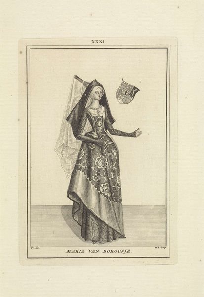 Editor: This is Antoine Trouvain’s “Madame la Marquise de Polignac, een maskertje in de hand,” made in 1694, using ink, coloured pencil and paper. I’m struck by how this piece portrays wealth and status through incredibly detailed rendering of clothing and accessories. What's the historical context of such portraiture? Curator: That's an astute observation. In late 17th century France, images like these weren’t merely about likeness; they were powerful statements of social standing. Consider the setting: images of the aristocracy functioned as public relations, influencing how individuals and families were perceived and integrated into the intricate hierarchies of the court and the nation. This was art functioning as social currency. Editor: Social currency…so her very image had value? Curator: Precisely. Look at the print's creation; it's a drawing intended for wider dissemination, indicating its purpose went beyond private appreciation. The exaggerated height of her Fontange hairstyle, the richness of her gown – these were meticulously crafted visual cues dictating place within the societal landscape. The Rijksmuseum now houses this artwork, how do you think it shifts the context? Editor: Right. Because it has entered the public domain and museum space. I now wonder about Trouvain as the artist: what were his incentives, who did he want to reach, what was his situation? I think I had focused too much on the depicted person! Curator: Good question! Examining Trouvain’s role, and the patronage system supporting artists is vital for understanding the power dynamics at play, who has the power of the pen – literally and figuratively! Considering that allows a richer appreciation, not just of this image, but of art’s role in reflecting and shaping its social environment. Editor: I see, thinking about art as a participant in social power and image management changes everything.