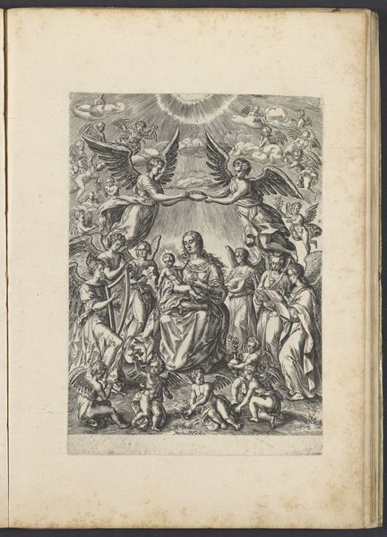 Jean Dambrun created this print, "Tijdens een offerande wordt Numa door Ceres beloond," using etching and engraving techniques. The density of lines creating the scene speak to the amount of labor involved in this traditional method of image-making. Look closely, and you can almost feel the incised lines in the paper made by the engraver’s tools. These lines hold ink, which, when pressed onto paper, create the image we see here. The quality of the line—crisp in some areas, softer in others—shows the range of marks achievable through skillful handling of tools and materials. Such prints were relatively inexpensive to produce, therefore circulating ideas widely during Dambrun’s time. In this case, the image depicts Numa being rewarded by Ceres during a sacrifice, thus illustrating a historical narrative and a cultural scene. Next time you encounter a print, consider it as a product of skilled labor and a conduit for the circulation of stories. Appreciating the making of it helps us move beyond just the image itself.