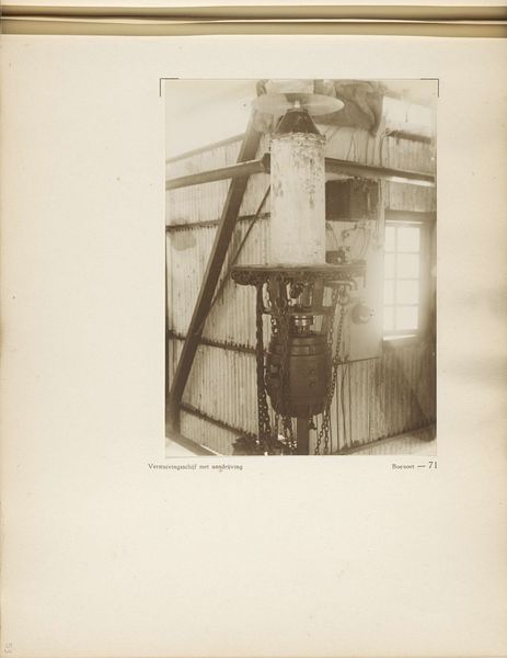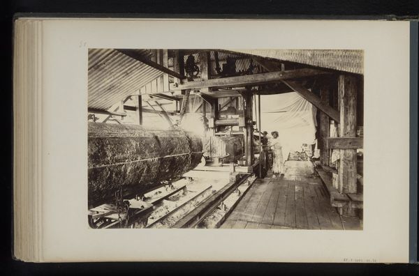 Curator: I'm just mesmerized by the sepia tones, the ghostly presence of it all... Almost like peering into a Victorian dream, or a steampunk novel coming to life. Editor: Indeed. This gelatin silver print by C.M. Ferrier and F. von Martens captures a marine engine showcased at the Great Exhibition in 1851. It's an artifact not just of engineering, but of labor and industry, meticulously photographed to broadcast the triumphs of the era. Curator: Oh, absolutely! There’s such a strange poetry in documenting such cold, hard machinery. It looks oddly beautiful. And it has so much depth in its silver print. I am curious how people moved when facing this giant mechanism? Editor: Exactly, look at the staging! Here is industry presented as both art and evidence. Gelatin silver prints allowed for mass reproduction, facilitating this distribution of images promoting industrial advancement and Britain's imperial prowess. Curator: So, a tool not just for seeing, but for selling! Though it feels more elegiac than promotional to me now. A little like remembering the future people dreamed of way back when, I imagine those that produced this photo worked extremely hard. Editor: Yes, we see photography used here, to elevate and broadcast Victorian Britain's ingenuity but it would not have been possible without exploiting cheap labor and a global extraction economy to harvest raw materials. These shiny technologies conceal exploitative practice. Curator: It really does put a strange taste in one’s mouth. Thinking of all of those unacknowledged hands working hard under harsh conditions. The engine almost appears too clean. How can something become a triumph and tragedy at the same time? Editor: Precisely. Even now, this technology that defined modernity requires we acknowledge its consequences in both human and environmental cost, as much as Ferrier and Martens celebrated progress. Curator: The way it juxtaposes elegance and heaviness makes you really ruminate. Thank you! Editor: A reminder that "progress" is rarely without a cost worth critically examining.