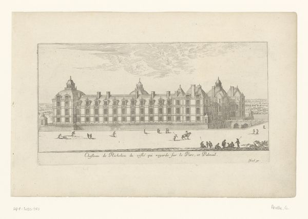 Israel Silvestre made this print of the Château de Bury in France. Although undated, it was likely made around 1642. The image presents the chateau as a seat of power and elegance. What does it mean to see a building memorialized like this? Silvestre’s print offers a glimpse into the lives of the elite during the 17th century. It reflects a society deeply divided by class, where wealth and status dictated one’s experience of the world. Architectural prints were both documentation and propaganda. They were tools to highlight one's lineage and cement their place in the social hierarchy. The Chateau de Bury, prominently displayed, becomes a symbol of wealth, lineage, and power. Consider, though, what is not shown here. The labor, exploitation, and resources needed to maintain such grandeur are absent from the image. What kind of stories remain untold? This print immortalizes the image of the ruling class, while it invisibilizes the lives of those on whose backs this splendor was built.