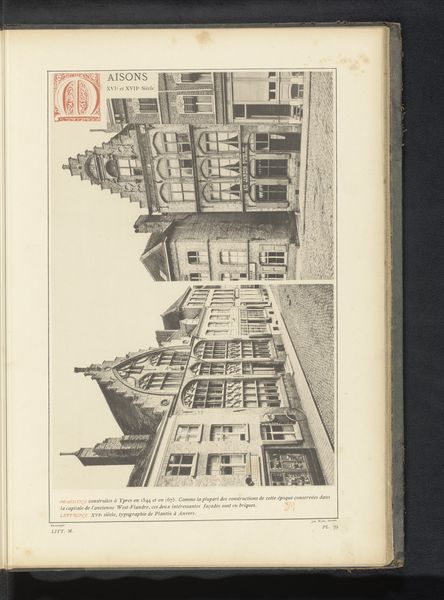 Curator: Let’s take a look at this etching, "Gezicht op een huis aan de Rue de Paris en een gezicht op een deel van het Celestijnenklooster in Doornik, België," dating from before 1880. It's an anonymous work, rendering a cityscape in ink on paper. Editor: It's stark. The angular architecture looms almost menacingly. All those sharp lines and heavy shadows give a powerful impression. What do you make of its composition? Curator: I’m particularly drawn to how the artist rendered the textures. Notice the clear contrast between the brickwork of the house and the stonework of the monastery. This detailed etching process emphasizes the inherent qualities of each building material, doesn't it? The etching seems concerned with showing how space is shaped through construction, particularly the labor involved in laying each brick. Editor: For me, the architecture takes on a more symbolic weight. The juxtaposition of the house on the Rue de Paris with the Celestijnenklooster triggers ideas about the earthly versus the spiritual. The house might represent everyday life, whereas the cloister suggests seclusion and devotion. It makes you wonder about the relationship between the secular and the sacred during that period. Curator: It does present an interesting interplay of social functions mirrored by material distinctions. Considering that it's a print, presumably made for wider circulation, the image hints at how urban spaces are not simply aesthetic arrangements, but products of social needs and values. Editor: Exactly. This etching doesn't just capture a moment in time, it encapsulates a dialogue between differing worldviews made concrete in brick and stone. Curator: That interplay reveals how cities are not just built of brick, mortar, and stone, but constructed with embedded ideas, power structures and collective endeavors. Editor: This has definitely reshaped how I viewed what initially felt like just a bleak street view. Now I sense something richer within this seemingly simple piece. Curator: Indeed. Examining the production process illuminates its deeper social implications.