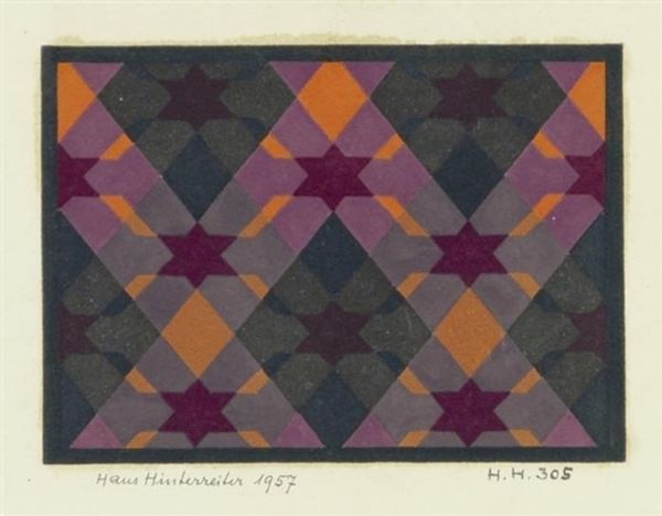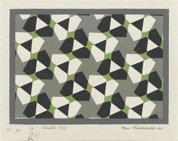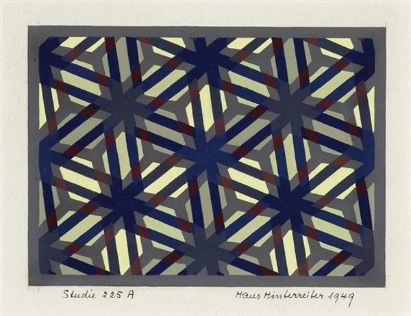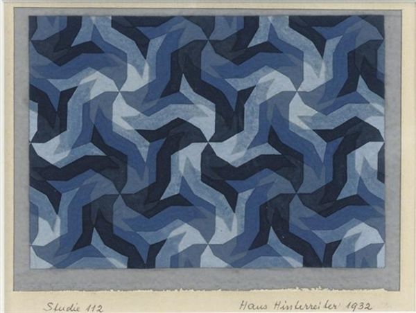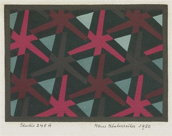 This is Studie 247A, made by Hans Hinterreiter in 1950. It looks like it was made with colored inks, and perhaps gouache? Either way, it's a game of shape and color. The colors are muted, almost earthy. And the way the shapes lock together reminds me of a puzzle. Look closely, and you'll see that the shapes aren't perfect. There's a bit of wobble and imperfection that gives the whole thing a handmade feel. Check out the way the colors bleed slightly at the edges of the shapes - a deep ochre, a sky blue, a rust red. It's not about perfection but about the joy of playing with color and form. Thinking about it, it reminds me of the work of Hilma af Klint, or even some of the Bauhaus artists, folks interested in how geometry and color can create a sense of harmony and balance. It's a beautiful thing, this little study!