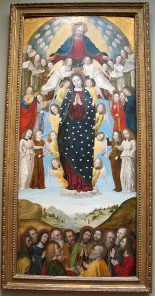 Palma Vecchio’s ‘Assumption of the Virgin’ presents a potent image of faith and divine ascent, likely painted in Venice sometime in the early 16th century. The Virgin Mary is carried to heaven, surrounded by cherubic figures while the apostles gaze upwards. Painted during the High Renaissance, this work embodies the era’s renewed interest in classical ideals, with balanced composition and idealized forms. At the time, the Catholic Church was a major patron of the arts, using visual imagery to inspire religious fervor. This painting would have served as a powerful statement of religious doctrine, reinforcing the church’s teachings about the Virgin Mary. It invites us to consider the politics of imagery and the public role of art in shaping beliefs. To understand this work more fully, we can consult historical texts, theological treatises, and artists’ biographies. In doing so, we can gain a deeper appreciation of the intricate relationship between art, religion, and society.